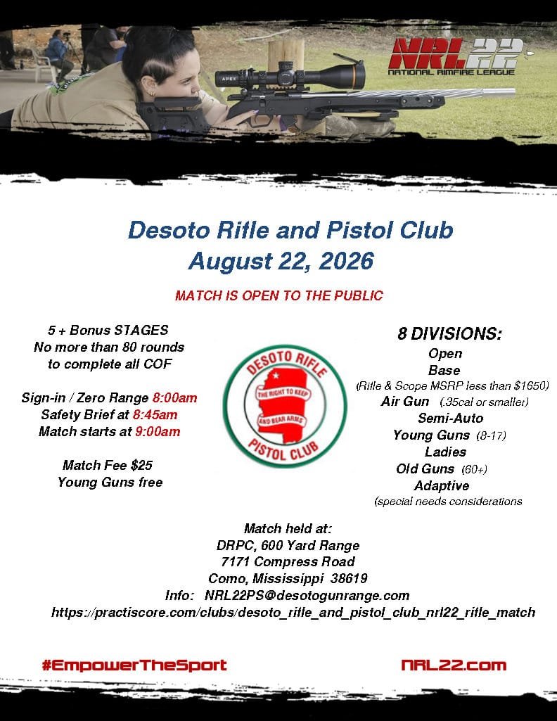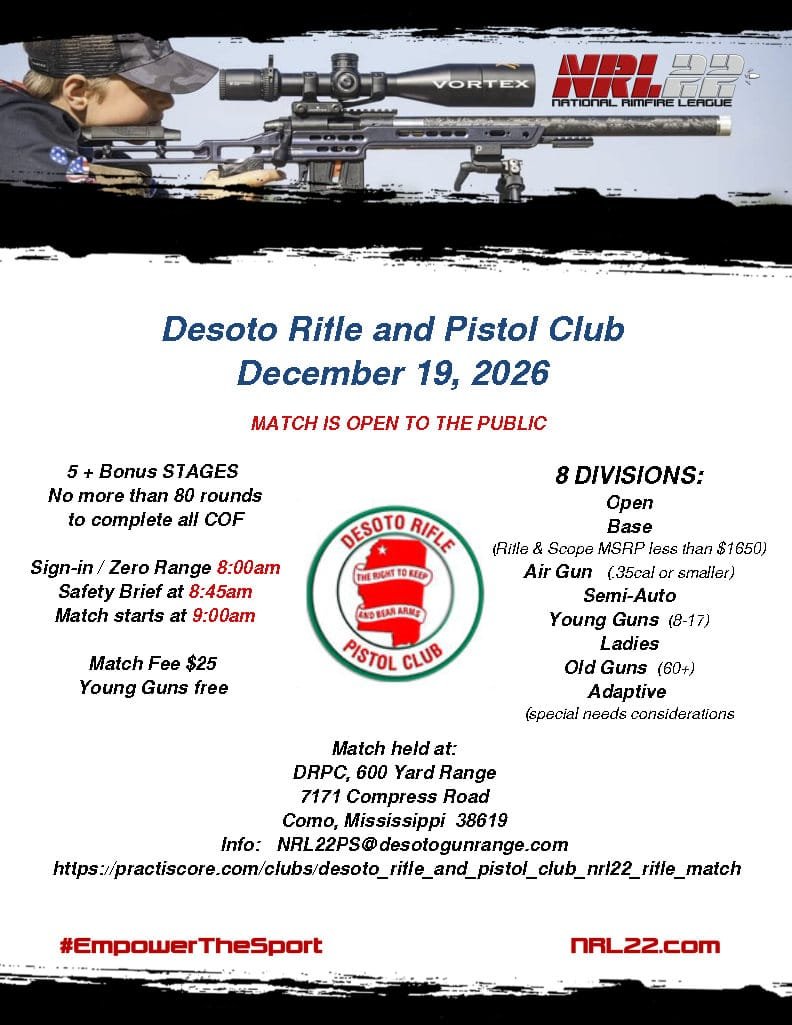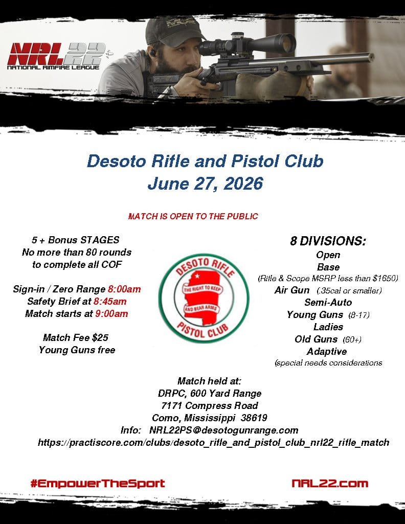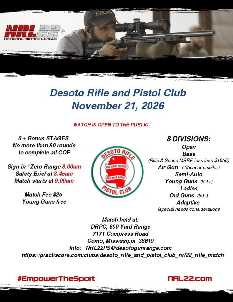 Desoto Rifle and Pistol Club - NRL22 Monthly COF + Bonus Stages 7171 Compress Road, Como, MS 38619