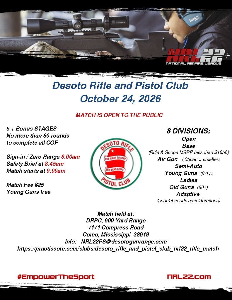 Desoto Rifle & Pistol Club - NRL22 Monthly COF + Bonus Stages 7171 Compress Road, Como, MS 38619